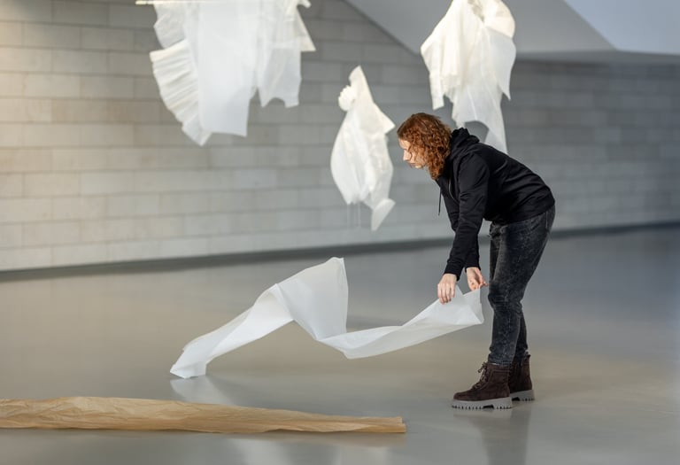My work is grounded in a dialogue with the material—paper—which reveals itself in sculptural objects and installations through form and interconnected particle systems.