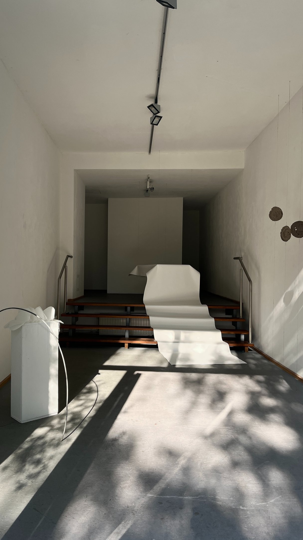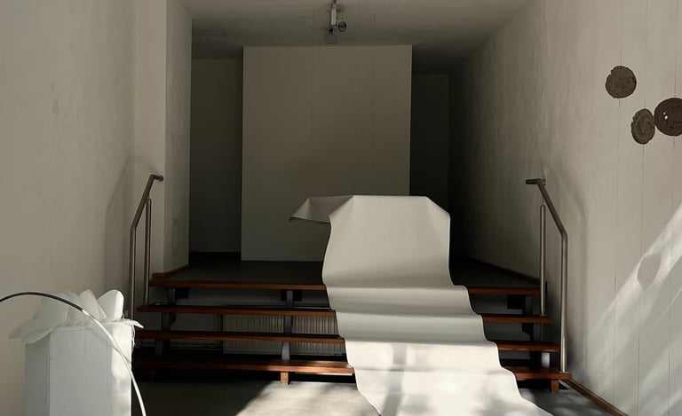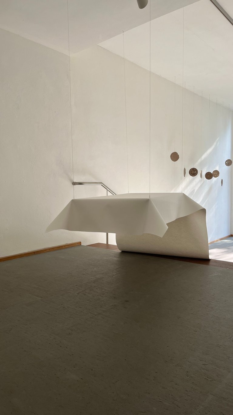 a solo exhibition at Galerie am Kunst presents paper-based artworks developed during a Paper Residency organized by the Haus des Papiers museum in Berlin and the Kunst Ort Lehnin institute