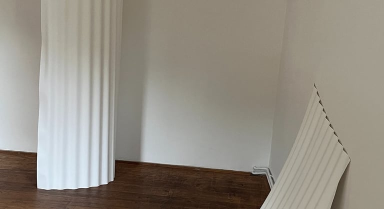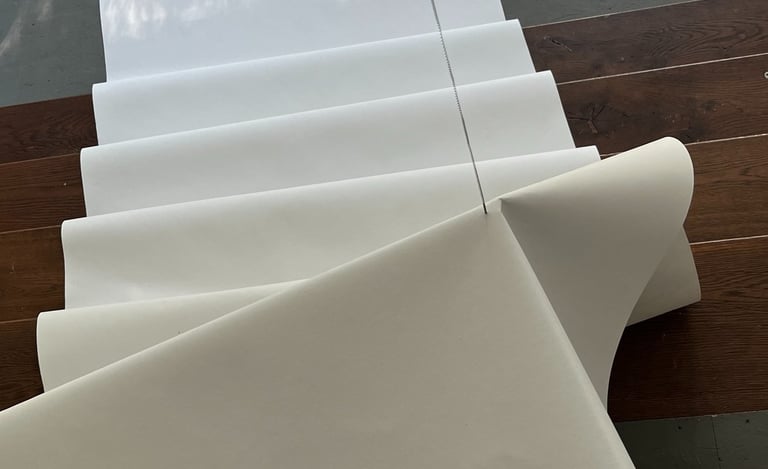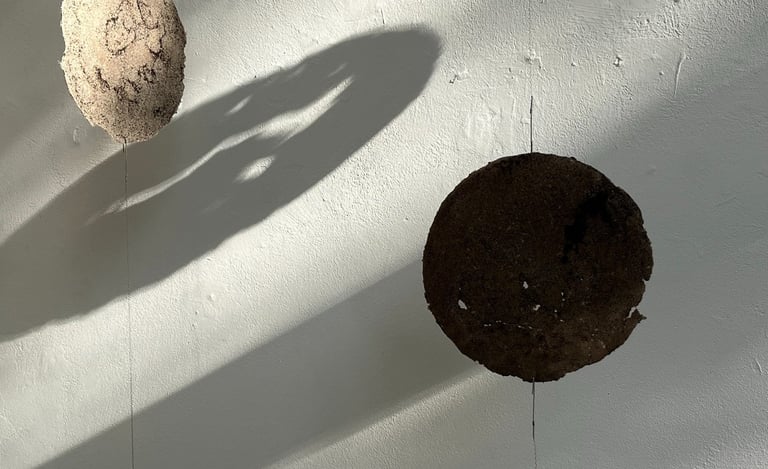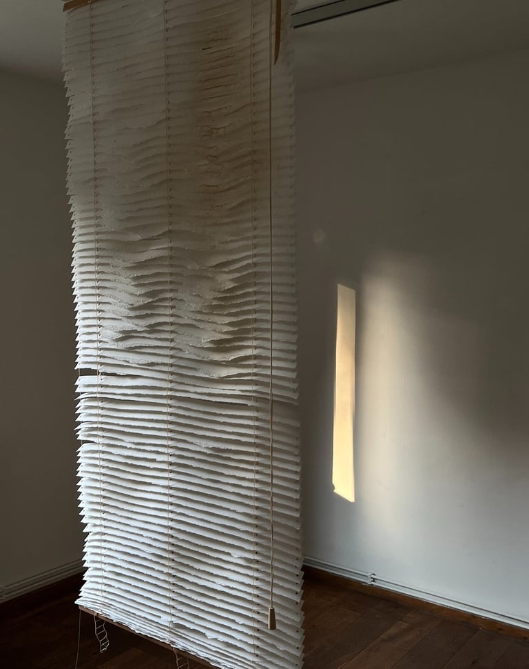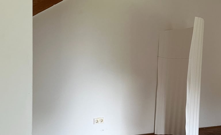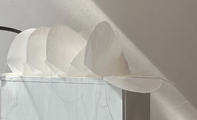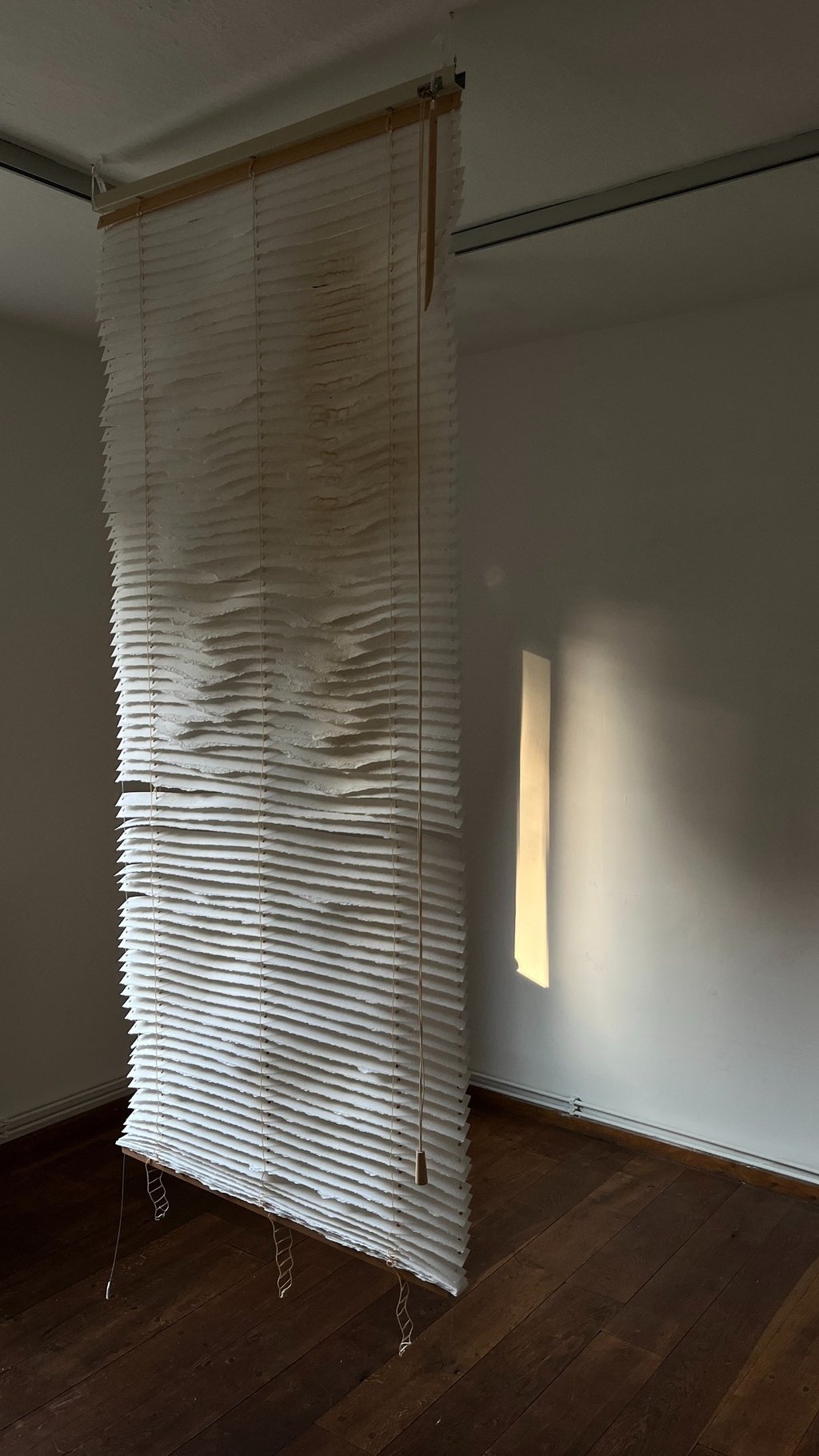 a solo exhibition at Galerie am Kunst presents paper-based artworks developed during a Paper Residency organized by the Haus des Papiers museum in Berlin and the Kunst Ort Lehnin institute
