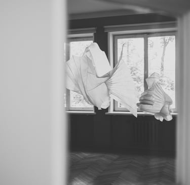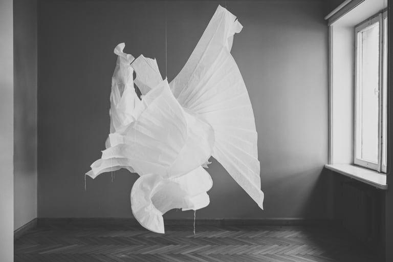 paper sculpture installation in the group exhibition "SAMBŪRIS" at the Galaunė House–Museum, a branch of the M. K. Čiurlionis National Museum of Art